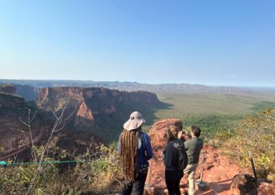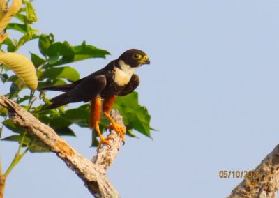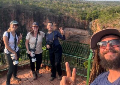 A saída é antes do nascer do sol, com os primeiros registros já ao amanhecer. Caminhadas leves são feitas em trechos do Parque Nacional de Chapada dos Guimarães, como a trilha da Cachoeira dos Namorados, e também na Cidade de Pedras, onde os paredões servem de abrigo e ponto de sobrevoo para diversas espécies.