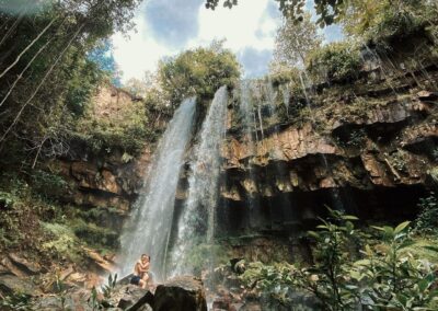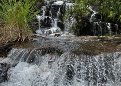 The Águas do Cerrado Waterfall Circuit is one of the most complete day tours in Chapada dos Guimarães, featuring several waterfalls and natural pools for swimming in a preserved wetland area (vereda), where the Cerrado landscape is present in its full richness.
