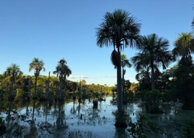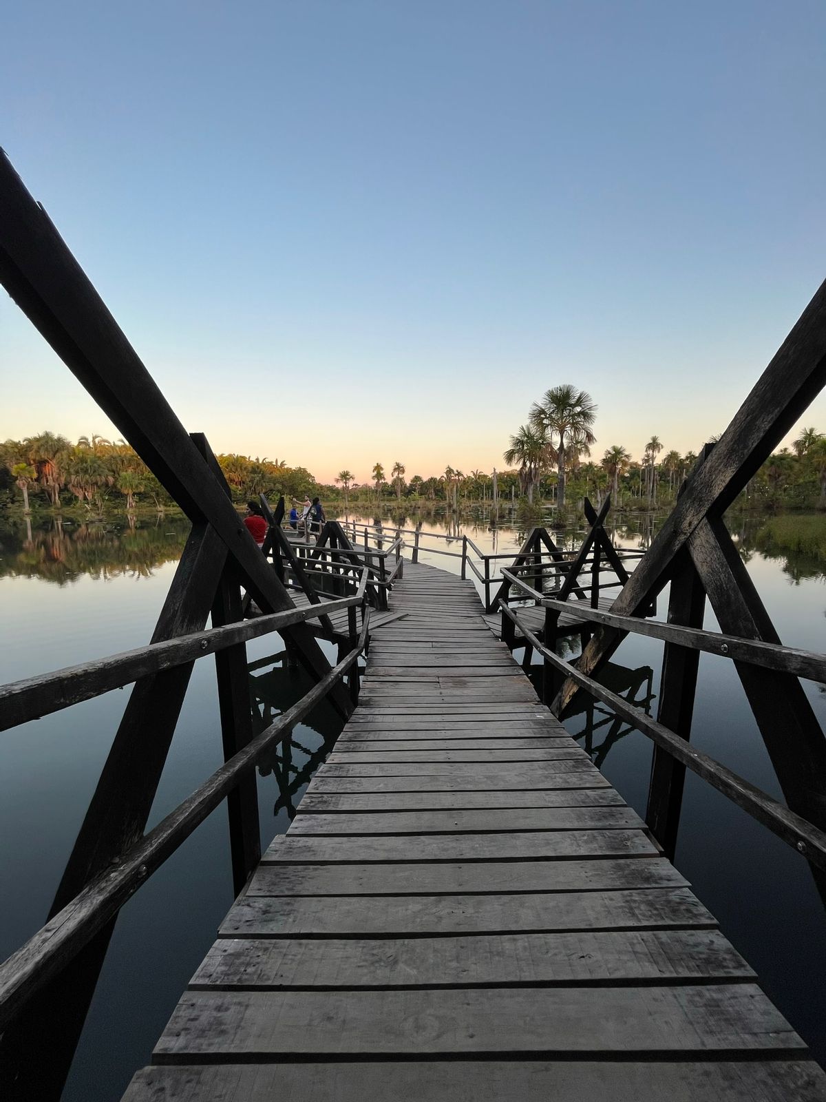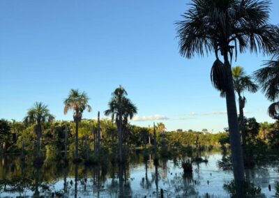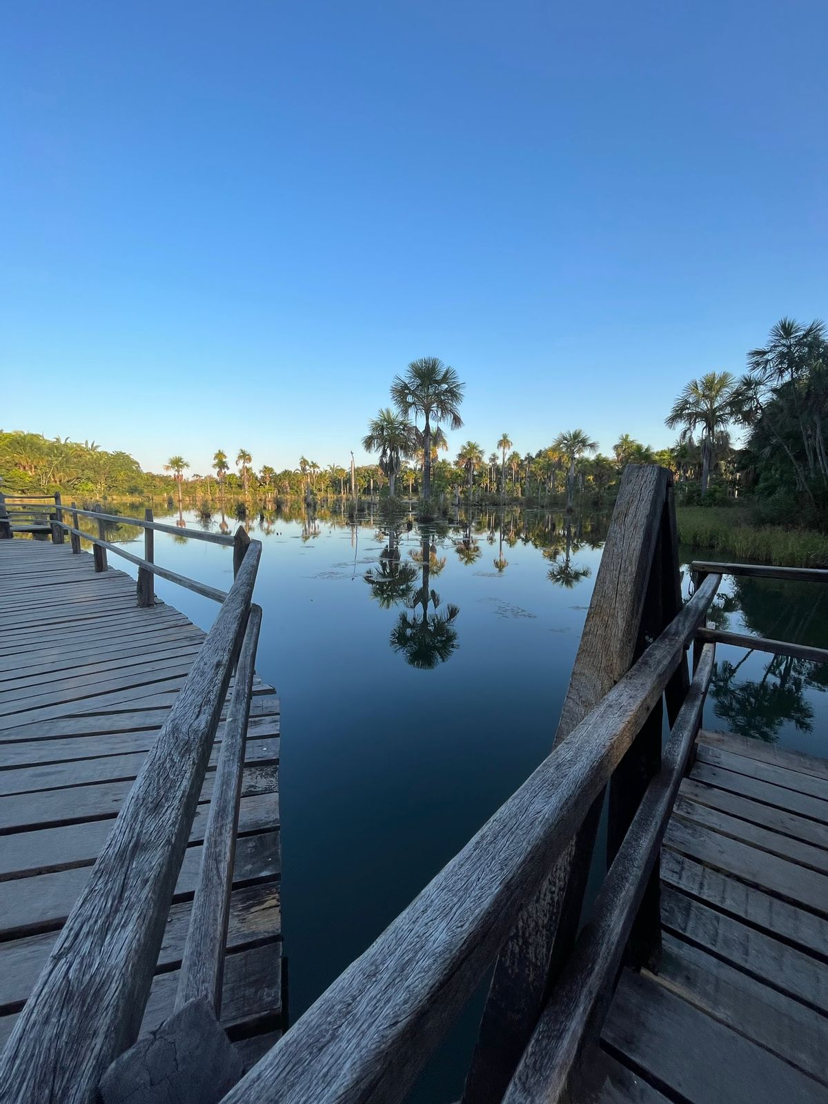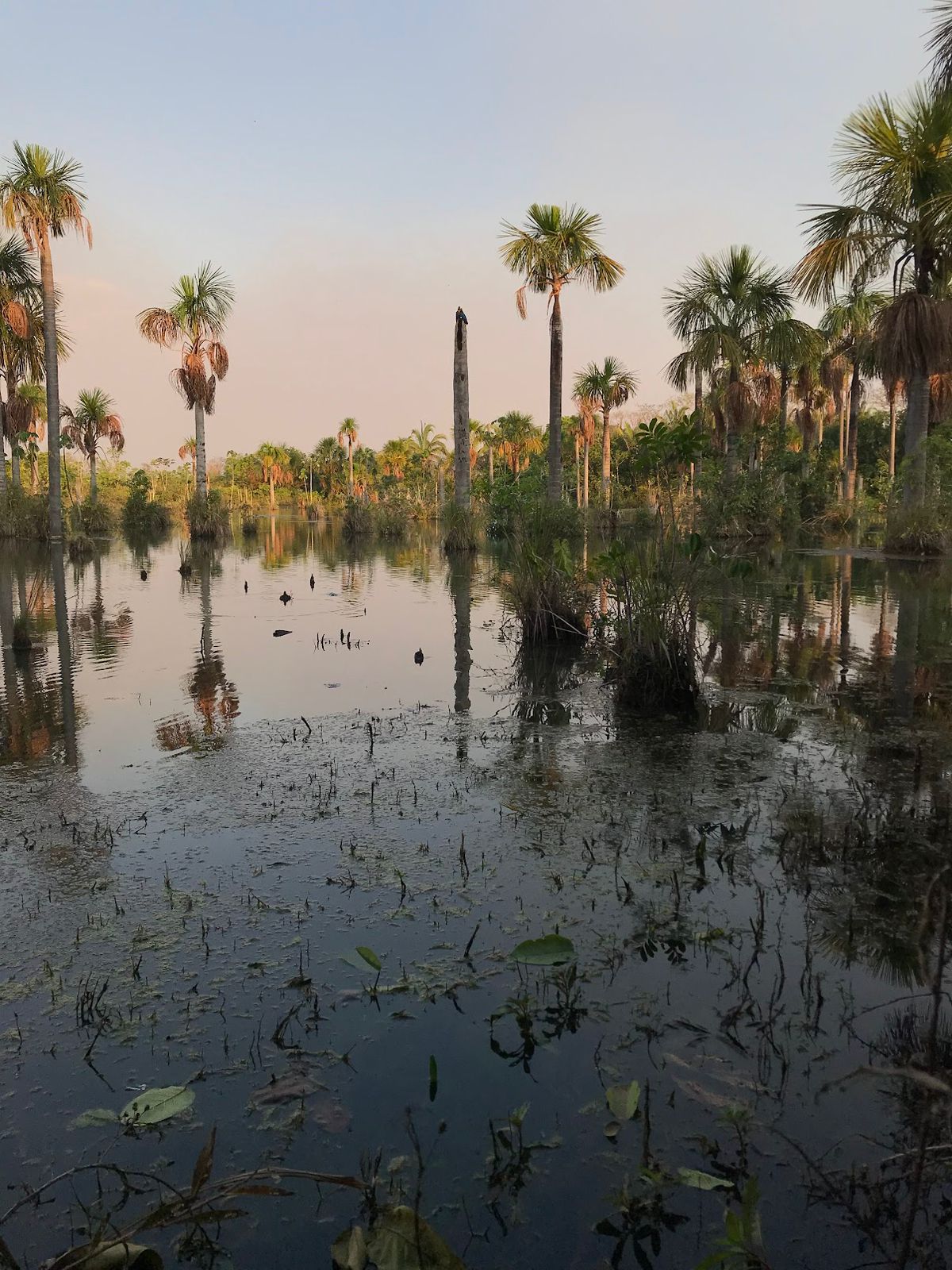 Cercada por buritis e vegetação típica do Cerrado, a lagoa é conhecida por abrigar dezenas de espécies de aves que retornam todos os dias ao entardecer para descansar entre as palmeiras.