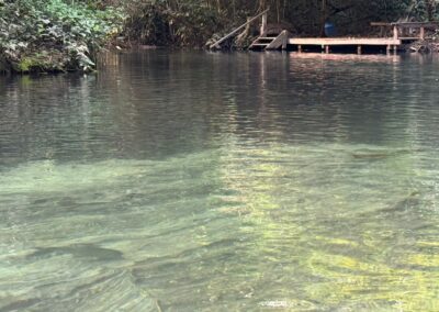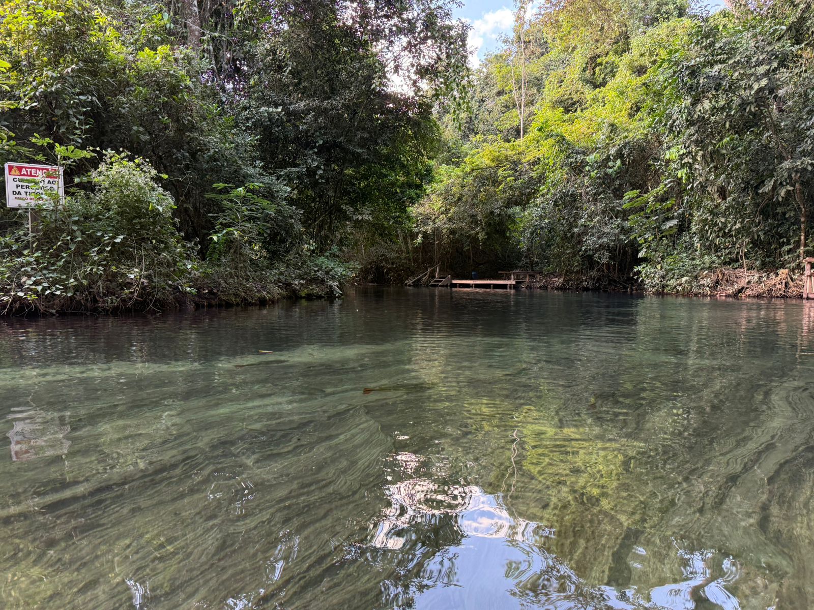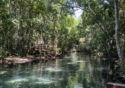 A flutuação percorre aproximadamente 710 metros, permitindo a observação de peixes como piraputangas e dourados em seu habitat natural.
